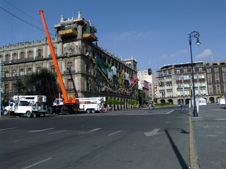 Cerramos sobre 2o de Noviembre, rumbo al Zócalo, levantamos nuestras manitas y ensayamos la entrada triunfal 🙂. Unos trabajadores colocaban los adornos luminosos de las Fiestas Patrias, que me recordaron esta foto de mí a las 6:00 am en el Zócalo en 2009, la última vez que corrí el MICM. Completamente feliz.